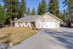 Well-maintained single-level home set on a spacious, level lot surrounded by mature pine trees. This property offers a functional and inviting floor plan with comfortable living spaces throughout. The living room is warm and a cozy, creating a welcoming atmosphere year-round. The kitchen is thoughtfully designed with modern cabinetry, ample counter space, stainless steel appliances, and a breakfast bar ideal for casual dining or entertaining. Adjacent dining area opens to the covered back patio, extending the living space outdoors and making it easy to enjoy the peaceful backyard setting. The primary suite offers a relaxing retreat with a private bathroom featuring dual sinks, a soaking tub, and a walk-in shower. Additional bedrooms are well-sized and versatile for guests, a home office, or hobbies. Outside, the covered patio overlooks a fully usable yard with plenty of room for outdoor activities, gardening, or pets.